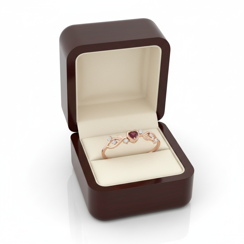 Delicado e romântico, o Anel Coração Encantado Branca de Neve em ouro rosé 18k foi inspirado na clássica princesa e em sua famosa maçã vermelha. No centro, um coração em tom rubi simboliza o amor verdadeiro, emoldurado por um galho sinuoso com pequenas folhas e brilhantes que lembram o jardim do conto de fadas. O acabamento suave e feminino do ouro rosé realça o contraste das pedras e traz um brilho mágico às mãos. Perfeito para presentear quem ama histórias de princesas ou para marcar momentos especiais com um toque de encanto, pureza e fantasia.